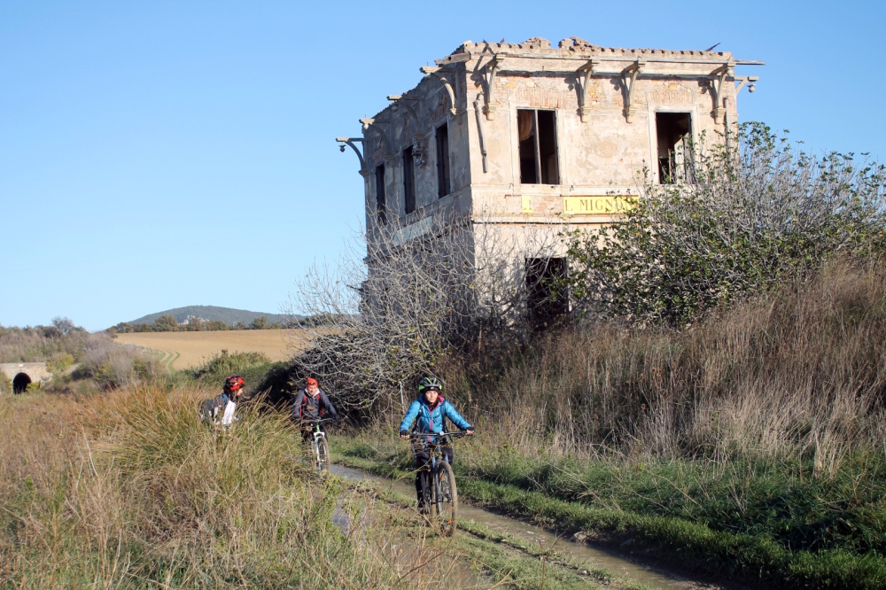 pedalando lungo la ex ferrovia Capranica – Civitavecchia, ci si imbatte spesso nei ruderi delle stazioni e delle opere ferroviarie, ormai avvolti dall’edera e dai rampicanti. Sono presenze silenziose che scandiscono le tappe del percorso, ricordando la vocazione originaria di questa linea che un tempo collegava l’entroterra al mare.