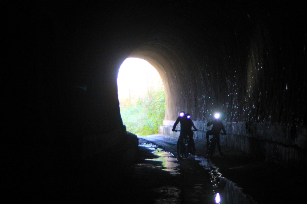 lunghe e buie gallerie ferroviarie, alcune oltre un chilometro, dove le luci frontali sono indispensabili.