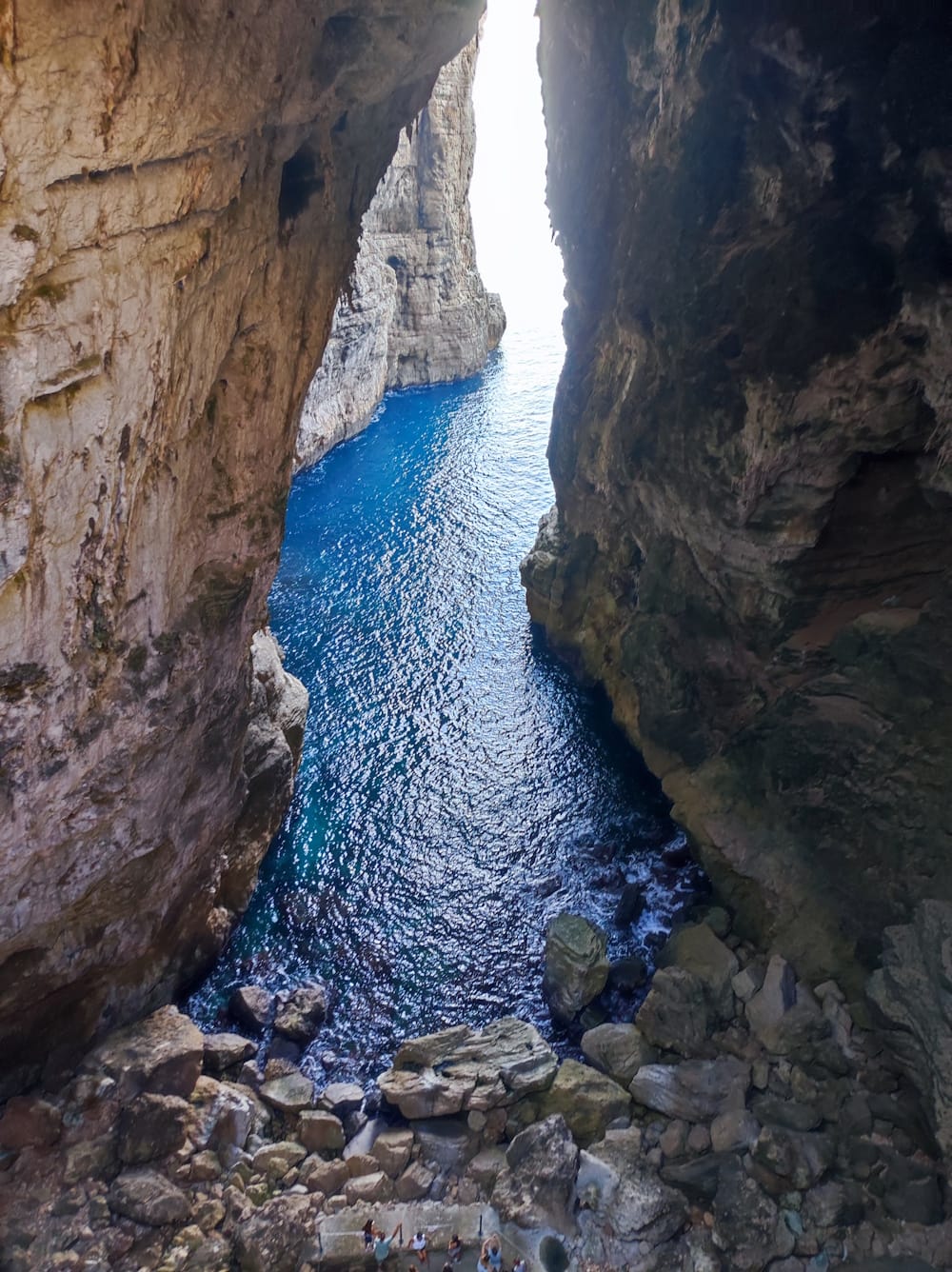 Arrivati in basso, l’impatto è stato travolgente: la grotta si apriva davanti a noi come una cattedrale naturale, con le onde che si infrangevano rimbombando tra le pareti.