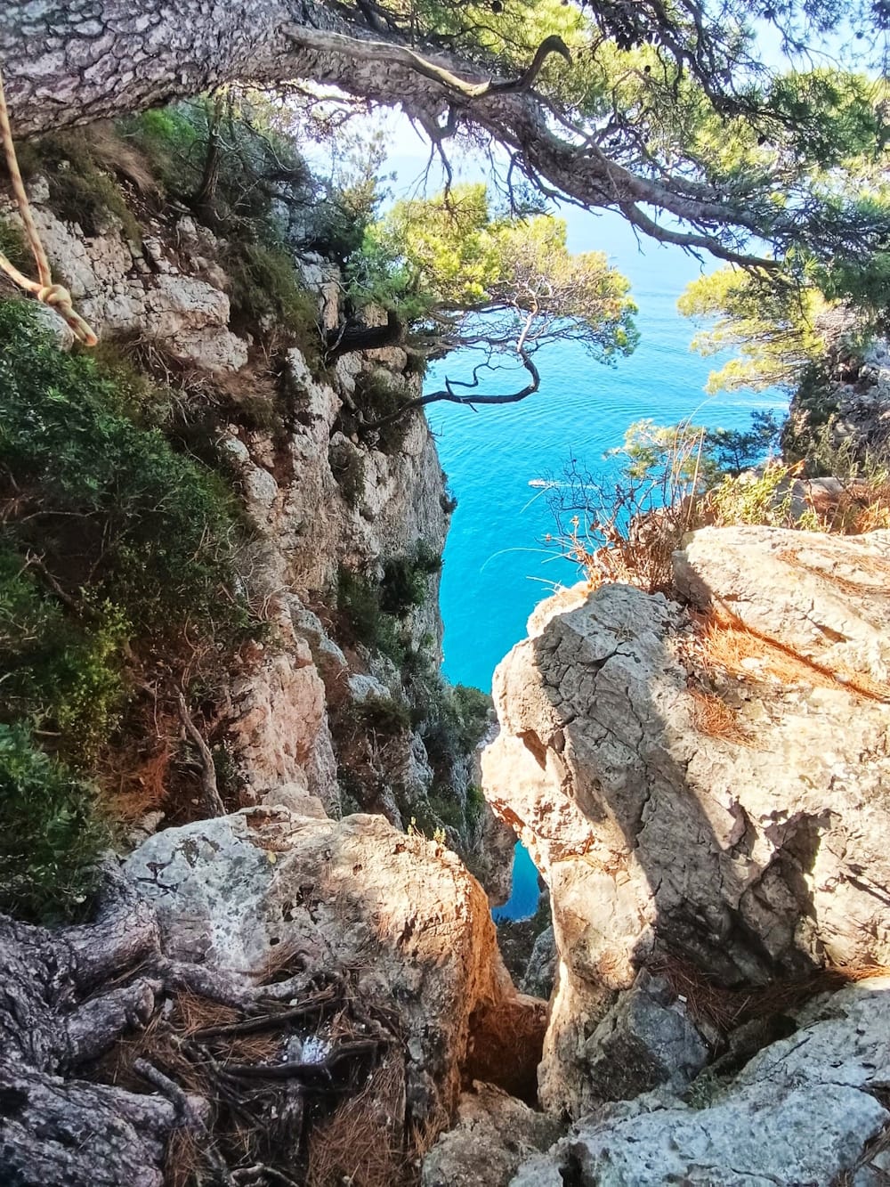 Il rumore del mare si faceva sempre più forte, e ogni svolta regalava un colpo d’occhio mozzafiato: la scalinata incastonata nella roccia, il blu intenso che si apriva sotto di noi, e quelle pareti verticali che sembravano scolpite dalla mano del tempo.