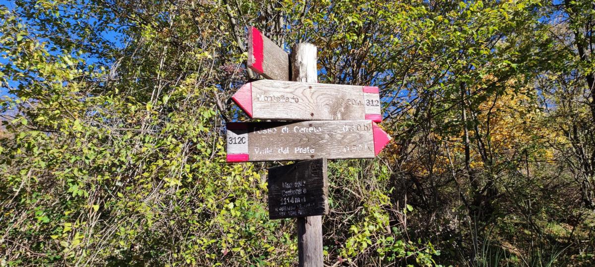 Proseguendo abbiamo incontrato il bivio con il sentiero 317 dal quale, andando a destra attraverso un tratto leggermente in discesa verso la Valle del Prete, si raggiunge prima il bivio con il sentiero 312C ed immediatamente dopo il bivio con il sentiero 312A che abbiamo imboccato, sempre salendo, che attraversa una serie di fossi.